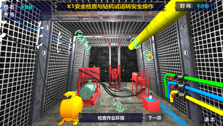 該系統(tǒng)通過(guò)虛擬動(dòng)畫(huà)實(shí)現(xiàn)探放水作業(yè)操作顯示,學(xué)員可以用觸摸方式代替鼠標(biāo),脫離電腦操作,實(shí)現(xiàn)人機(jī)交互,顯示器自帶音響系統(tǒng),音量可自行調(diào)節(jié),提供清晰聲音效果的同時(shí),避免多臺(tái)設(shè)備同時(shí)工作時(shí)互相產(chǎn)生干擾??己私Y(jié)束后,可將考核成績(jī)同步.上傳服務(wù)器并打印成績(jī)。