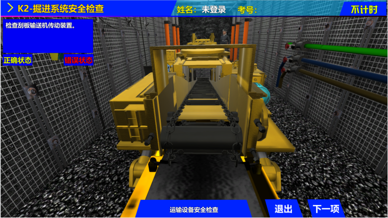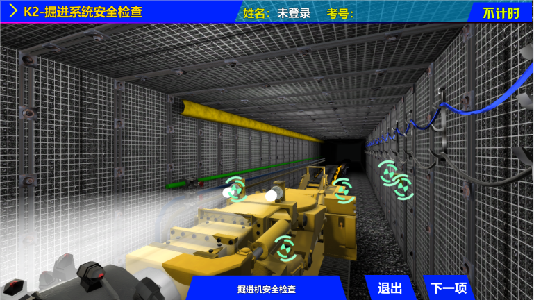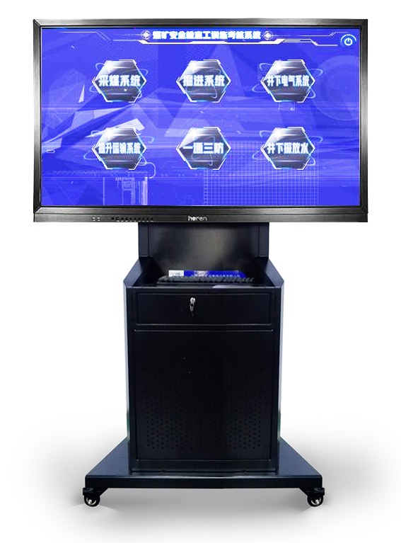 該系統(tǒng)采用55英寸高清液晶觸摸顯示一體機,在保證系統(tǒng)運行穩(wěn)定基礎上,充分發(fā)揮本系統(tǒng)的高質量三維場景畫面,提供更高質量的交互操作畫面。以觸摸代替鼠標的形式,脫離電腦操作的限制,增加人機交互的真實感。系統(tǒng)本身滿足安全檢查操作作業(yè)基礎規(guī)范要求,可進行采煤系統(tǒng)、掘進系統(tǒng)、提升運輸系統(tǒng)、井下電氣系統(tǒng),“一通三防”系統(tǒng)、探放水系統(tǒng)的模擬操作,通過檢查判斷,完成標準要求的所有考核項目。